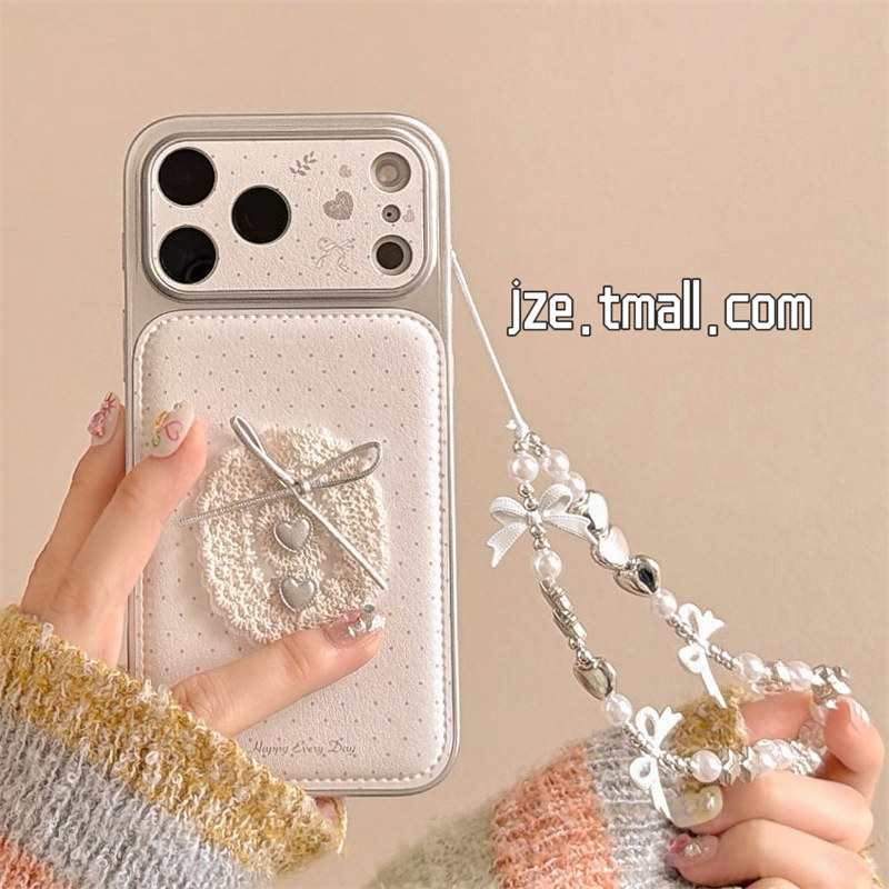 jze韩系ins温柔少女心波点蕾丝蝴蝶结适用苹果17ProMax手机壳iphone15新款16pro全包17pro大视窗14防摔手机套