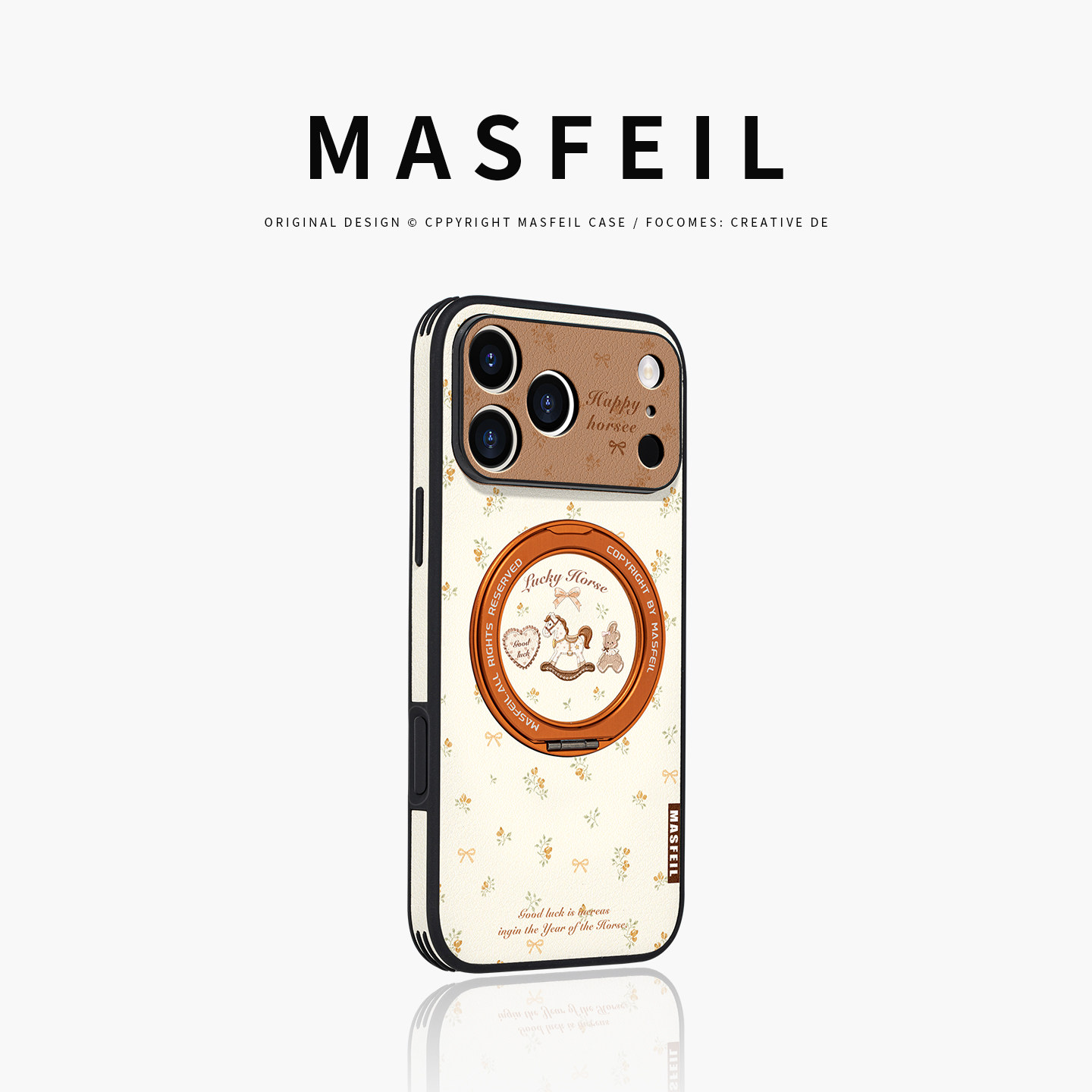 MASFEIL× 小马碎花适用iPhone17Promax手机壳新款ip15磁吸带支架苹果16Pro套Ho5支点新年好看高级感13pm全包