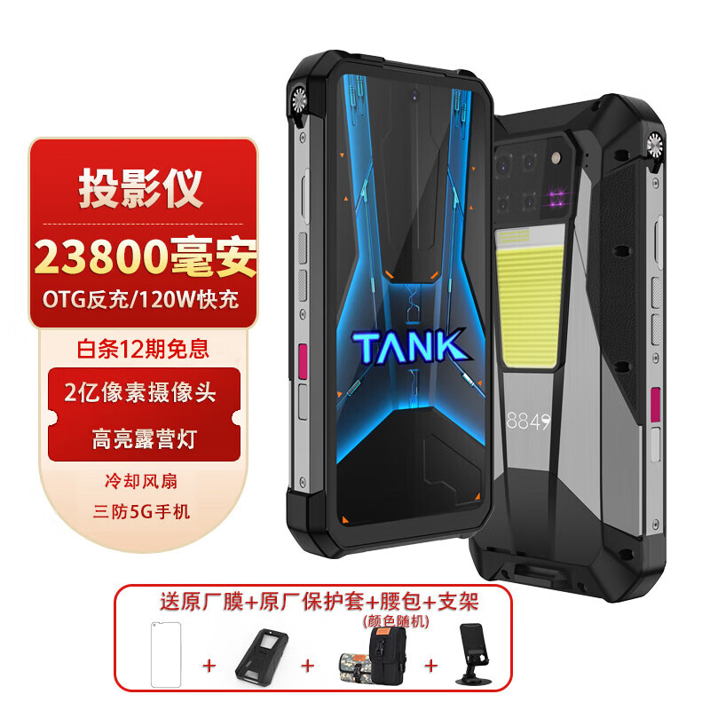 8849【厂家直发】坦克 tank3 pro 投影23800毫安超大电池120W快充三防5G外卖手机(防尘 防水 防摔) 18GB+512GB
