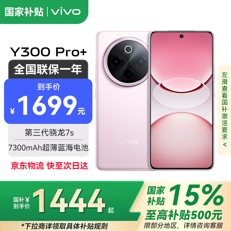 vivoY300 Pro+【国家补贴15%】 新品5G手机 7300mAh超薄蓝海电池 90W远航闪充 vivoy300pro+ 微粉 12GB+512GB