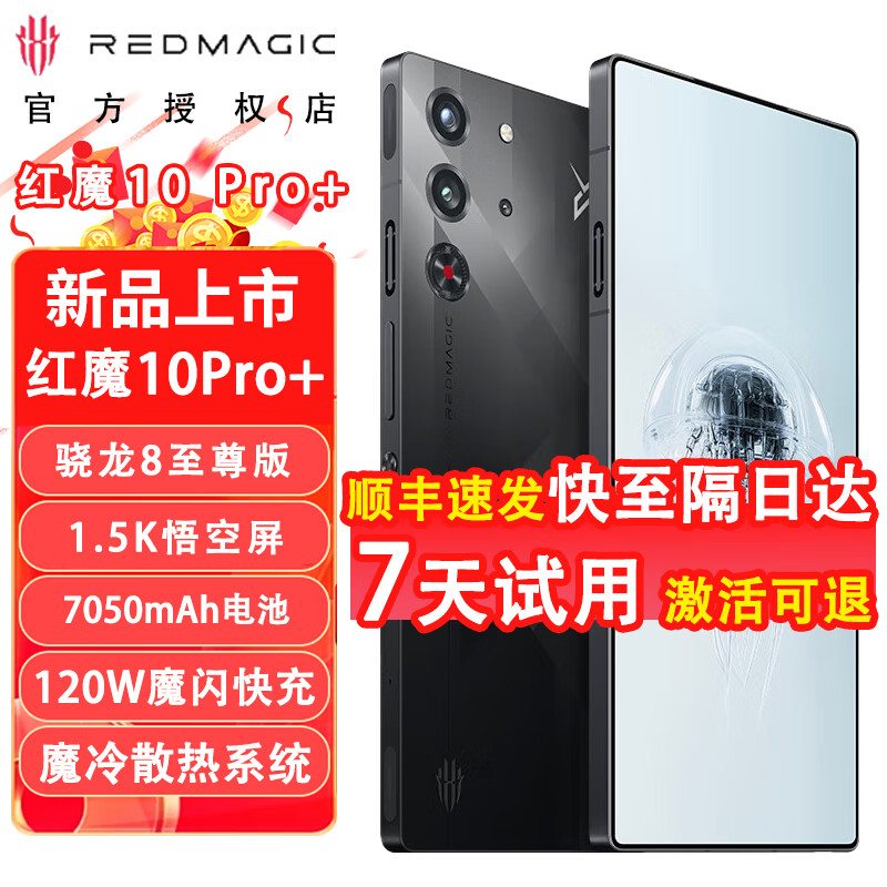 努比亚(nubia)红魔10 Pro+骁龙8至尊版移动平台 1.5K屏下摄像 旗舰电竞游戏5G AI智能手机 暗夜骑士24GB+1T 官方标配
