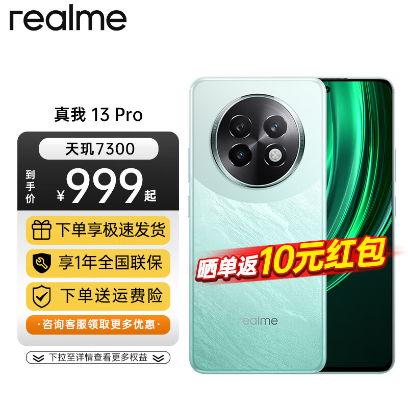 真我(realme)真我13Pro 天玑7300性能芯 80W智慧闪充 5000mAH大电池 钢化VC液冷散热 智能游戏手机 踏浪青 8+256GB官方标配