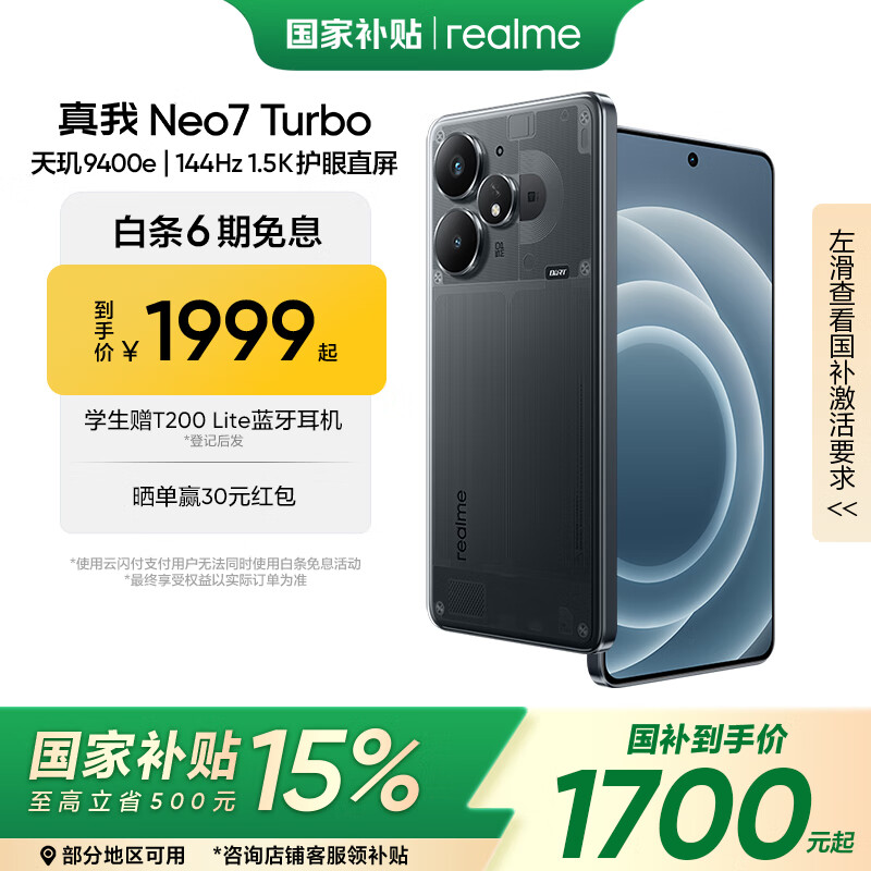 真我Neo7 Turbo 天玑9400e 超薄续航大电池护眼直屏 智能游戏AI性能手机 透明黑 12GB+256GB