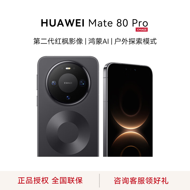 华为 Mate 80 Pro支持鸿蒙6.0 第二代红枫影像鸿蒙AI华为直屏鸿蒙手机 户外探索模式 第二代昆仑玻璃 曜石黑 12+256GB 官方标配