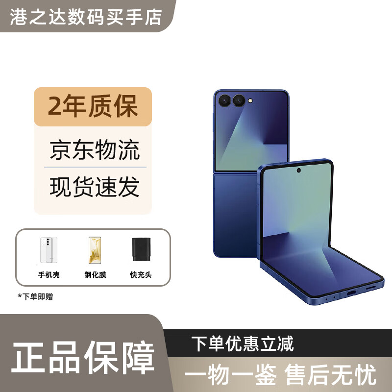 三星(SAMSUNG)Galaxy Z Flip7 SM-F7660 4.1英寸超大智能外屏库存 5000万像素AI折叠手机 灵动外屏 自定义互动 暗影蓝 12G+512GB 国版