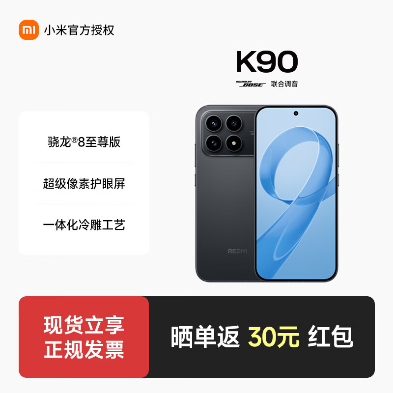 小米(MI)红米k90 骁龙8至尊版 Bose联合调音 长续航红米旗舰手机 黑色 12GB+512GB 官方标配