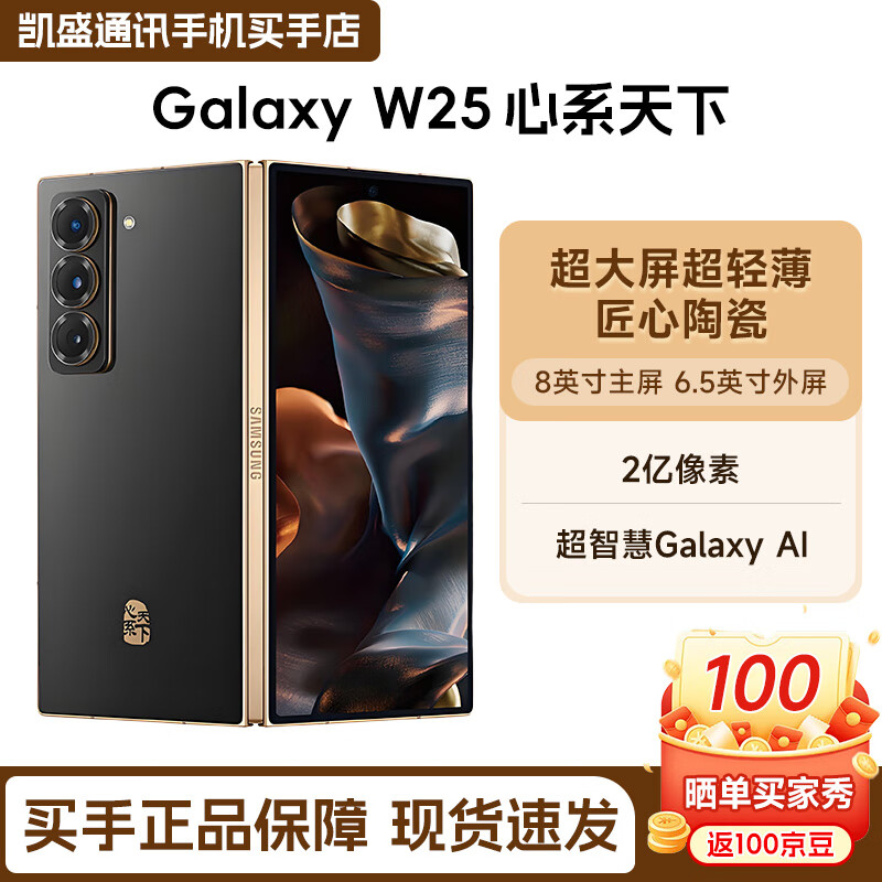 三星心系天下 W25 大屏轻薄 至尊陶瓷 2亿像素Galaxy AI 5G折叠屏手机 陶瓷黑(16GB运存) 512GB【补贴机24年11-25年2月】