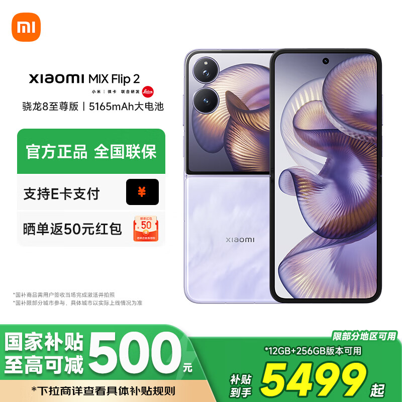 小米Xiaomi MIX Flip2折叠屏手机小米5G新品 星云紫 12GB+256GB 官方标配