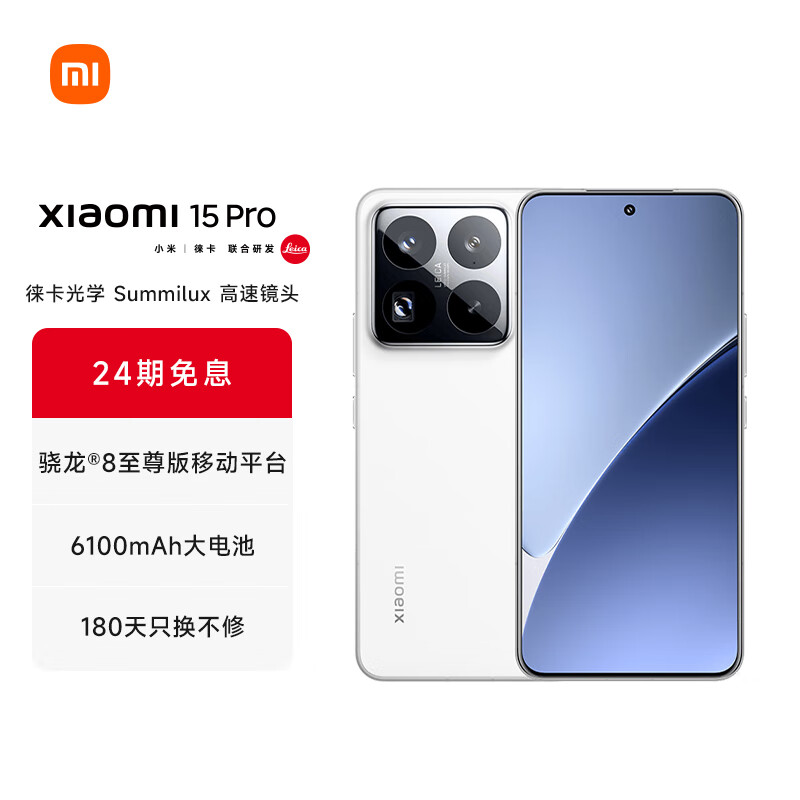 小米xiaomi小米15 Pro手机 国家补贴 徕卡光学镜头 骁龙8至尊版移动平台 6100mAh小米金沙江电池 白色 12GB+256GB