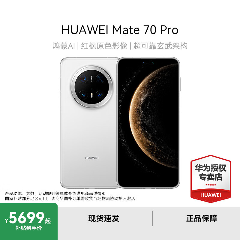 华为Mate70Pro 华为鸿蒙智能手机 鸿蒙AI 高亮钛玄武架构 红枫原色影像 国家补贴15% 雪域白 12GB+512GB 官方标配