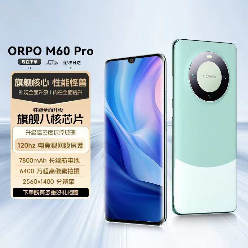 ORPO手机2025新款上市M60Pro超清护眼16G运行1TB 120Hz高刷 7800mAh长续航大电池游戏5G全网通双卡双待 山川青 豪华版:16G+1024G 【5G全网通+豪华礼品+质保三年】