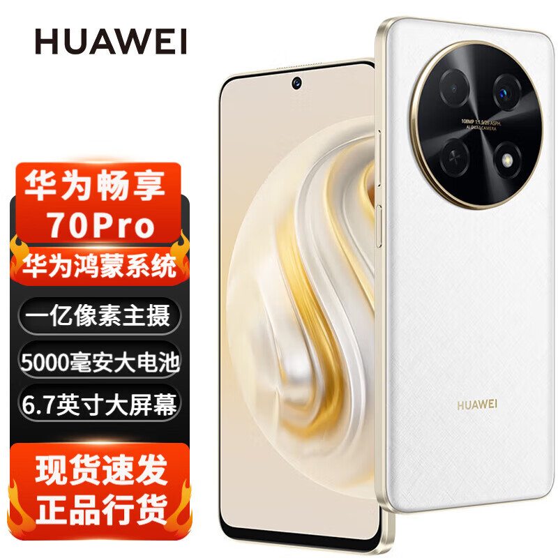 华为新品当天发华为 手机 70 pro 侧面指纹 鸿蒙系统 1.08亿像素【全国联保】 70pro【雪域白】 8G+256G
