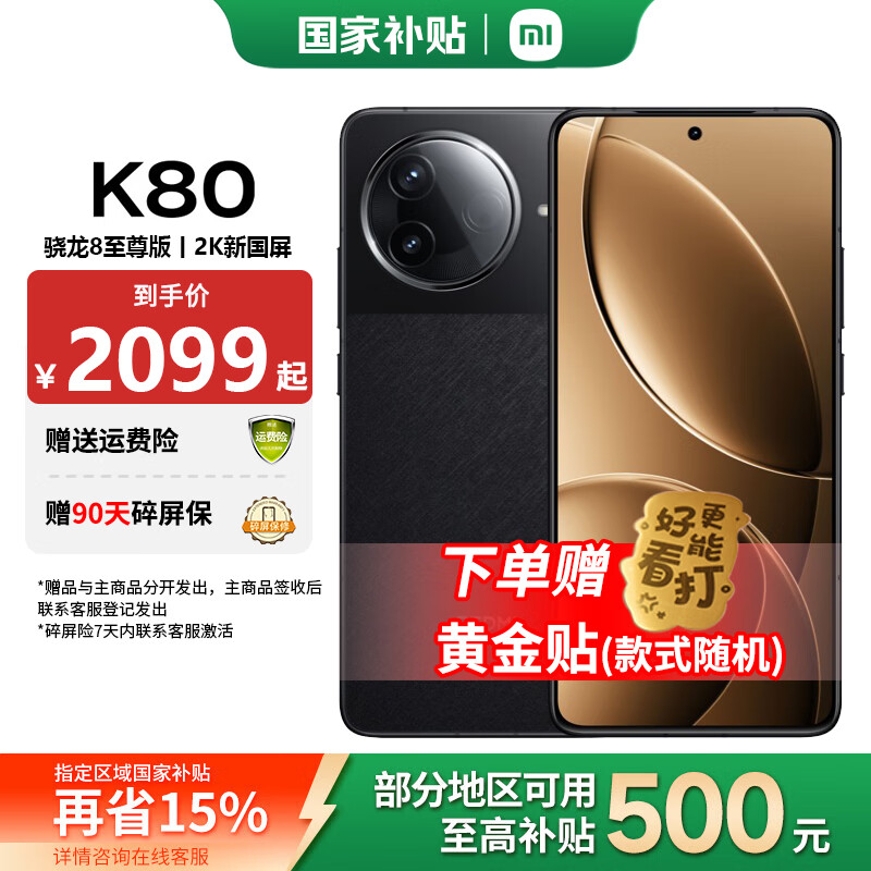 小米REDMI 红米K80 国家补贴 新品5G手机 Redmi 红米手机 玄夜黑 12GB+256GB 国补活动专享
