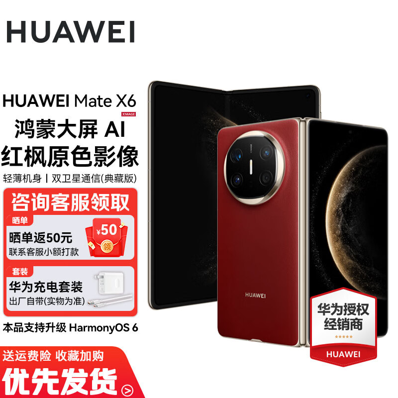 华为mate x6/典藏版【24期|免息】新品上市华为折叠旗舰手机 华为Mate品牌盛典折叠屏手机 寰宇红 12GB+512GB 神券专享