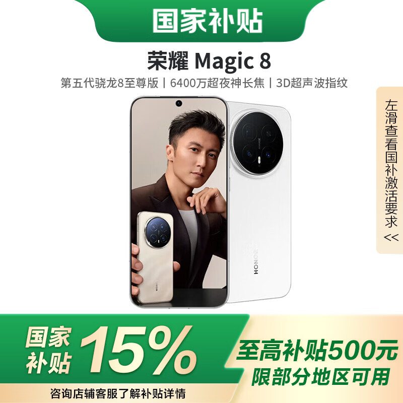 荣耀Magic8 新品5G手机 国家补贴 YOYO智能体 超夜神长焦 第五代骁龙8至尊版 拍照 AI旗舰手机 雪域白 12GB+256GB 官方标配