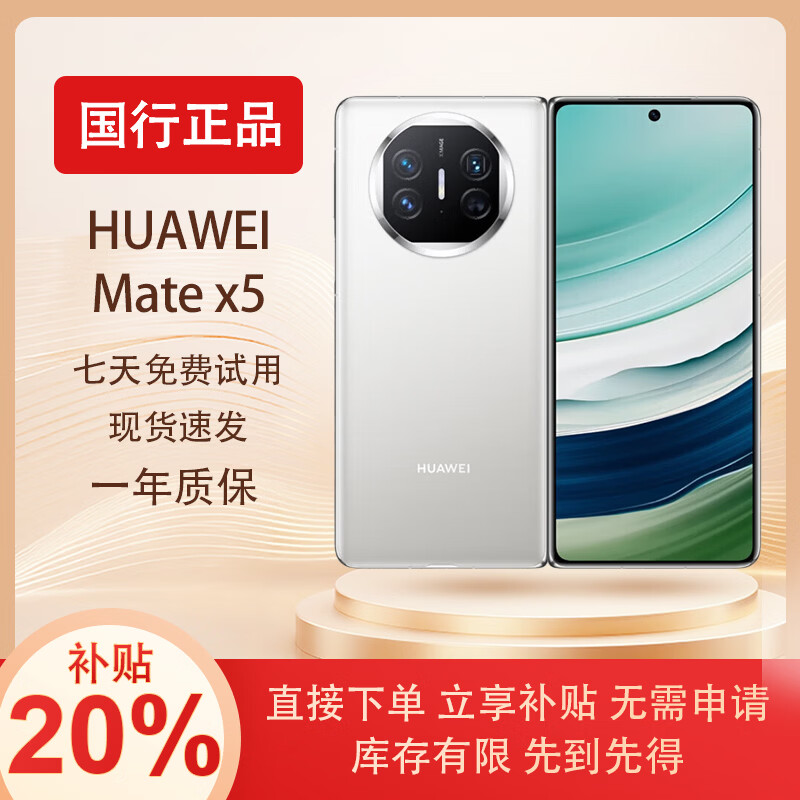 华为Mate X5 鸿蒙系统手机典藏版 折叠屏手机麒麟芯片鸿蒙AI智能旗舰商务 羽纱白【Mate X5】 12G+512G 支持7天试用赠送适配充电器