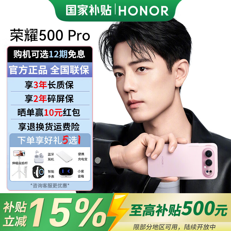 荣耀500 Pro【国家补贴】超级Pro版 5G手机 2亿人像全能实况 智能AI 手机荣耀500pro 肖战同款 星光粉 12GB+256GB 官方标配