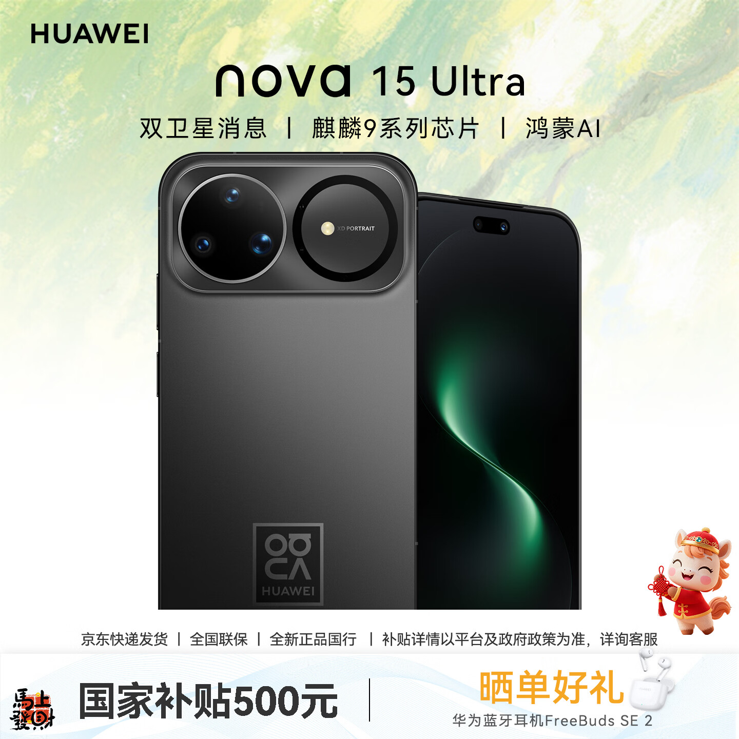 华为(HUAWEI)nova 15 Ultra 手机【国家补贴500元+晒单送华为无线耳机】 幻夜黑 512GB昆仑玻璃
