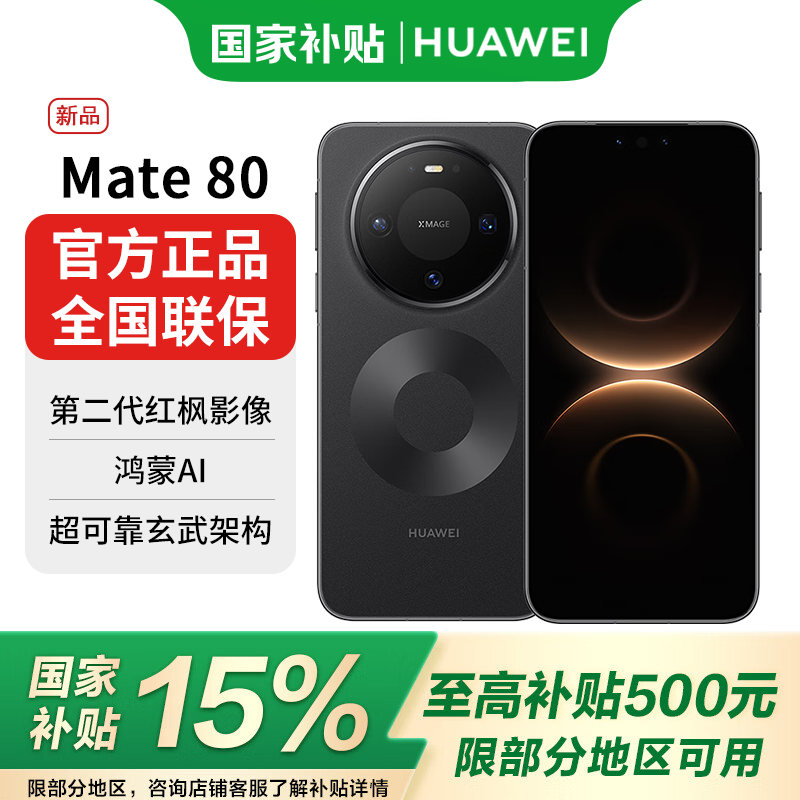 华为(HUAWEI) Mate 80 华为新品旗舰手机 麒麟9020 第二代红枫影像鸿蒙AI 华为直屏鸿蒙手机 曜石黑 12GB+512GB 官方标配