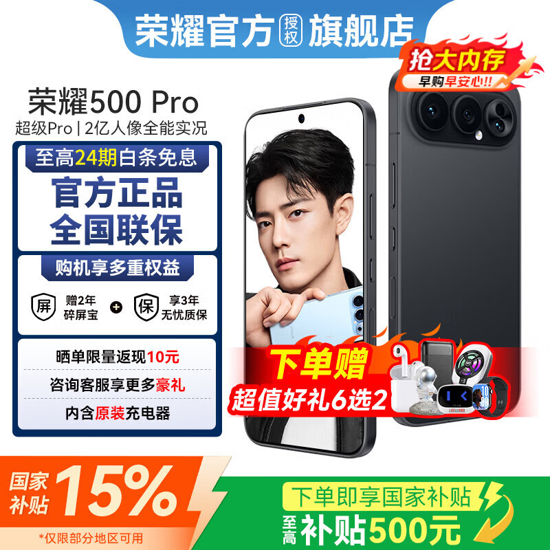 荣耀500Pro 超级Pro版 肖战同款 骁龙8至尊旗舰芯 8000mAh电池 5G手机 学生 新款拍照手机 曜石黑 12GB+512GB 官方标配【国补15%+碎屏宝】