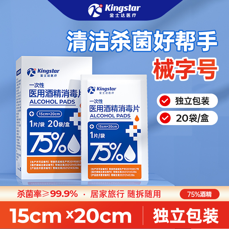 金士达医疗75%医用酒精棉片大号一次性消毒湿巾独立装家用擦手机