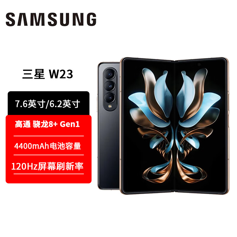 三星 SAMSUNG 心系天下 W23 非凡陶瓷 尊奢铰链 瑰丽边框 三星W23 全网通5G 折叠手机 熠金黑 16GB+512GB