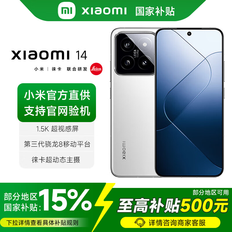 小米14 【多地国补15%】徕卡光学镜头 光影猎人900 徕卡75mm浮动长焦 第三代骁龙8 旗舰手机 白色 16GB+512GB 官方标配