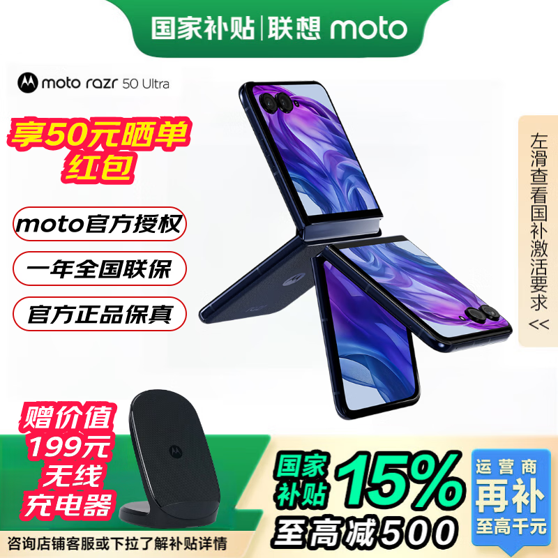 摩托罗拉moto razr 50Ultra第五代折叠屏 4英寸无界大外屏 旗舰影像双卡双待 5GAI手机 复古单宁12+512【国家补贴】