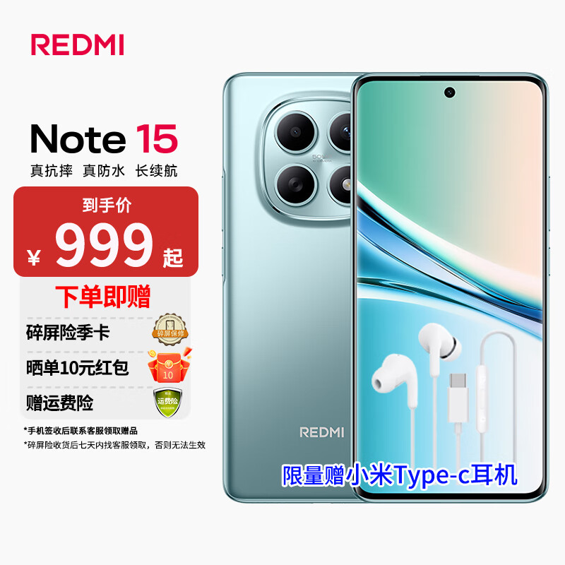 小米REDMI Note 15 国家补贴 真抗摔 真防水 长续航 新一代小金刚 红米 新品 5G手机 天青蓝 8GB+128GB 官方标配