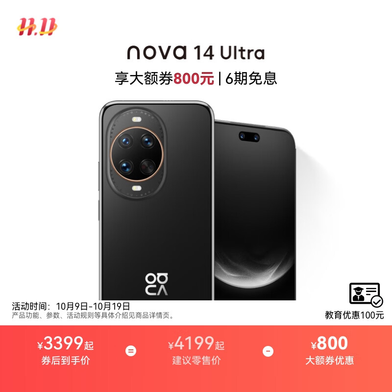 华为nova 14 Ultra新品全焦段红枫质感人像天通北斗双卫星通信 鸿蒙智能手机 曜金黑 1TB