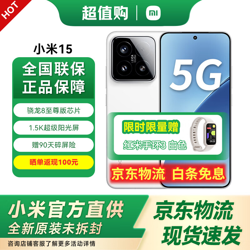 小米15【国家补贴】5G手机 小米15 徕卡光学Summilux高速镜头 骁龙8至尊版移动平台 12GB+256GB 白色 官方标配 全网通