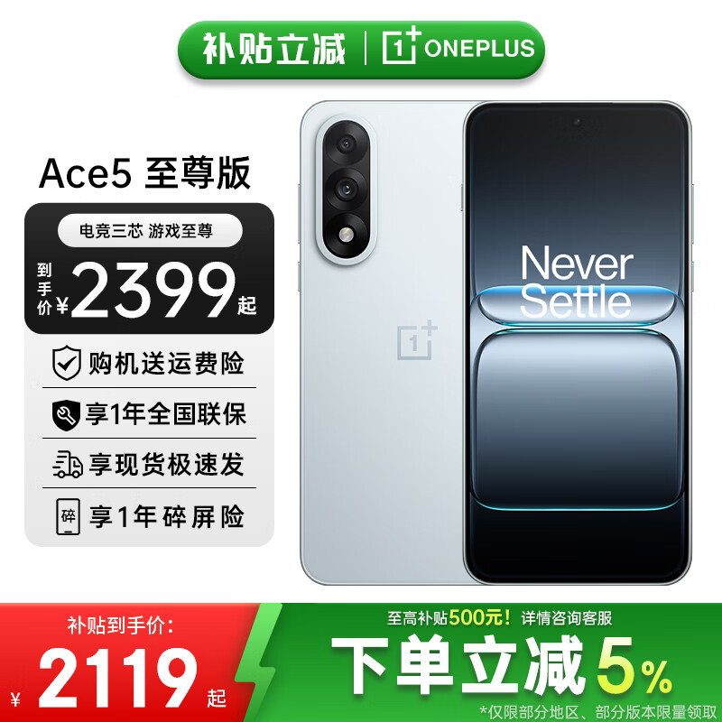 一加Ace 5 至尊版 新品游戏性能 天玑9400+旗舰芯风驰游戏内核一加ace5至尊版手机 清风蓝丨12+256 官方标配