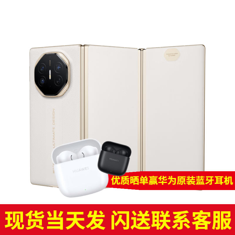 华为【24期|免息】Mate XTs 三折叠屏手机 超纤薄 岩脉纹理 华为matexts三折叠 非凡大师 2025上市新品 皓白 16GB+512GB【全网通】