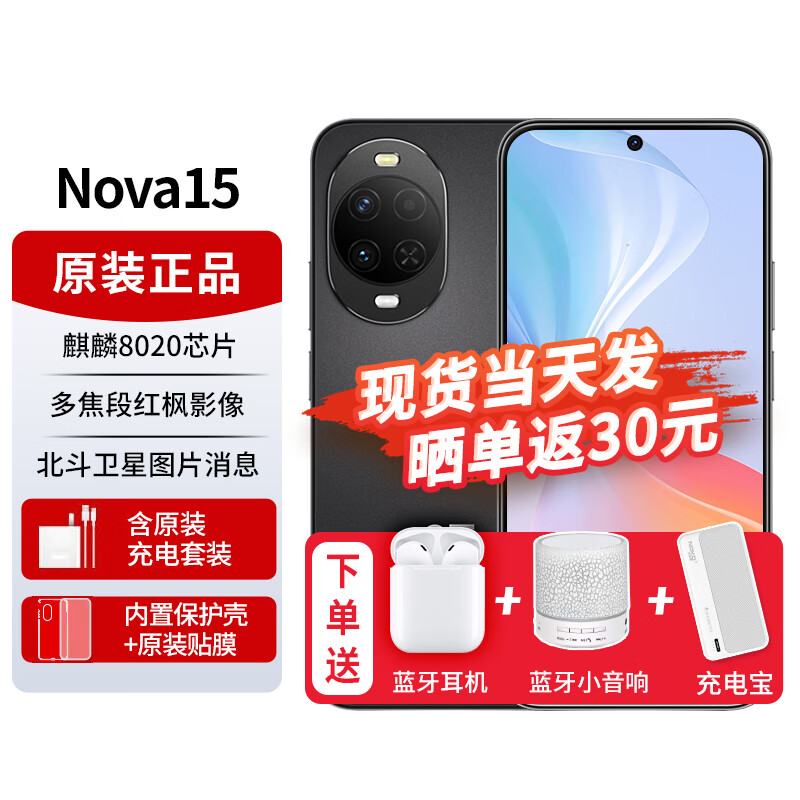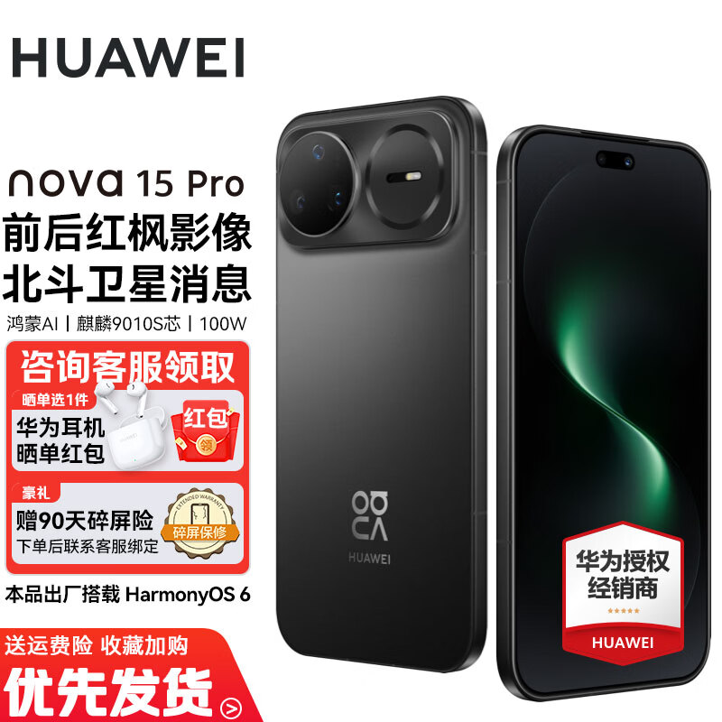 华为nova15pro 新品手机 麒麟9系芯片 前后红枫影像 鸿蒙AI 超动态臻彩护眼屏鸿蒙智能新机 幻夜黑 12+512GB 昆仑玻璃 全新正品 赠碎屏险