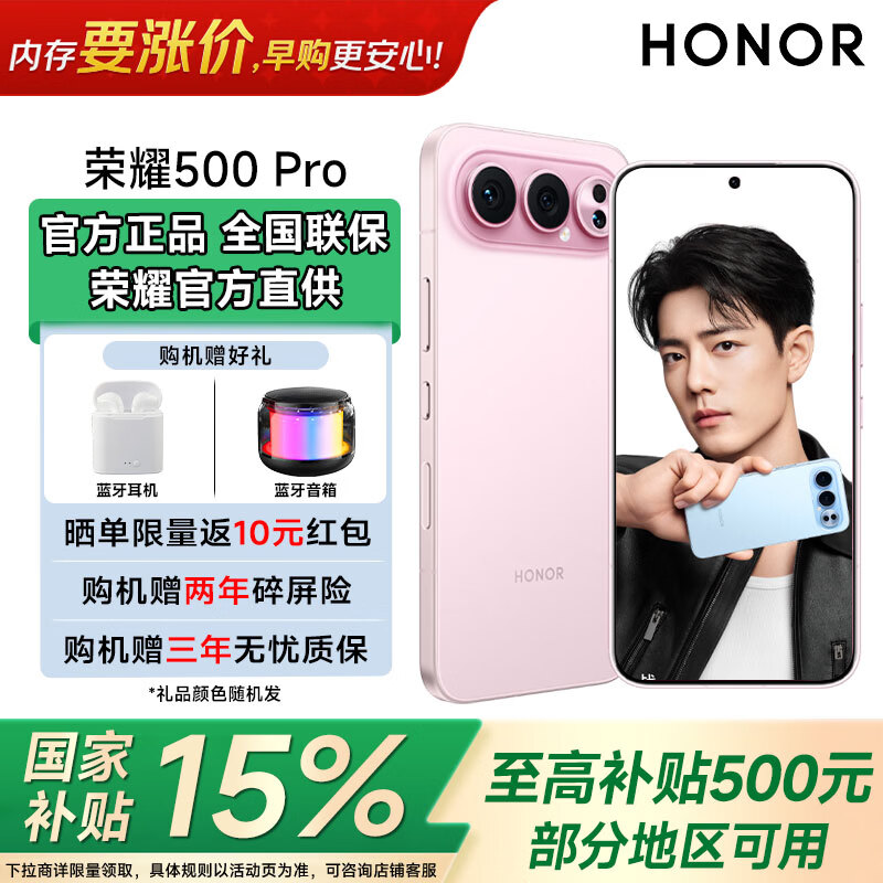 荣耀(HONOR)荣耀500Pro 【肖战同款】 骁龙8至尊旗舰芯 青海湖电池 5G AI 学生 新款拍照手机 星光粉 12GB+256GB 【官方标配】