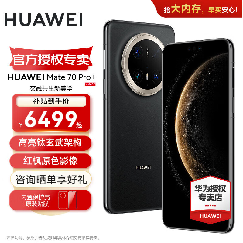 HUAWEI Mate 70 Pro+ 新品手机 华为mate70pro+ 鸿蒙AI 高亮钛玄武架构 华为鸿蒙智能手机 墨韵黑 16GB+512GB 官方标配