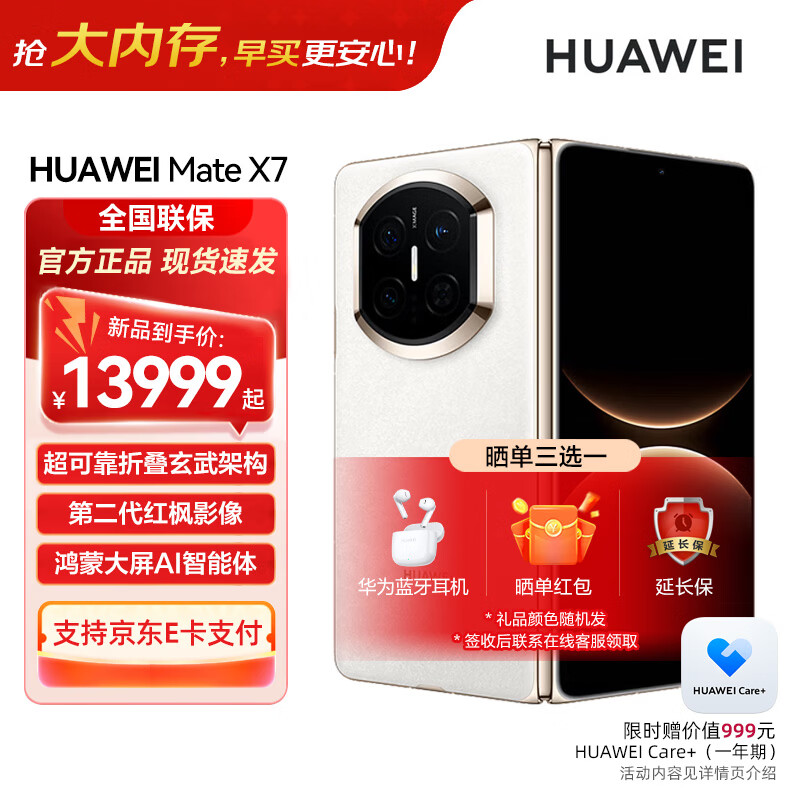 HUAWEI Mate X7 麒麟9030 Pro 超可靠折叠玄武架构 华为折叠屏鸿蒙手机 云锦白 16GB+512GB(典藏版) 官方标配