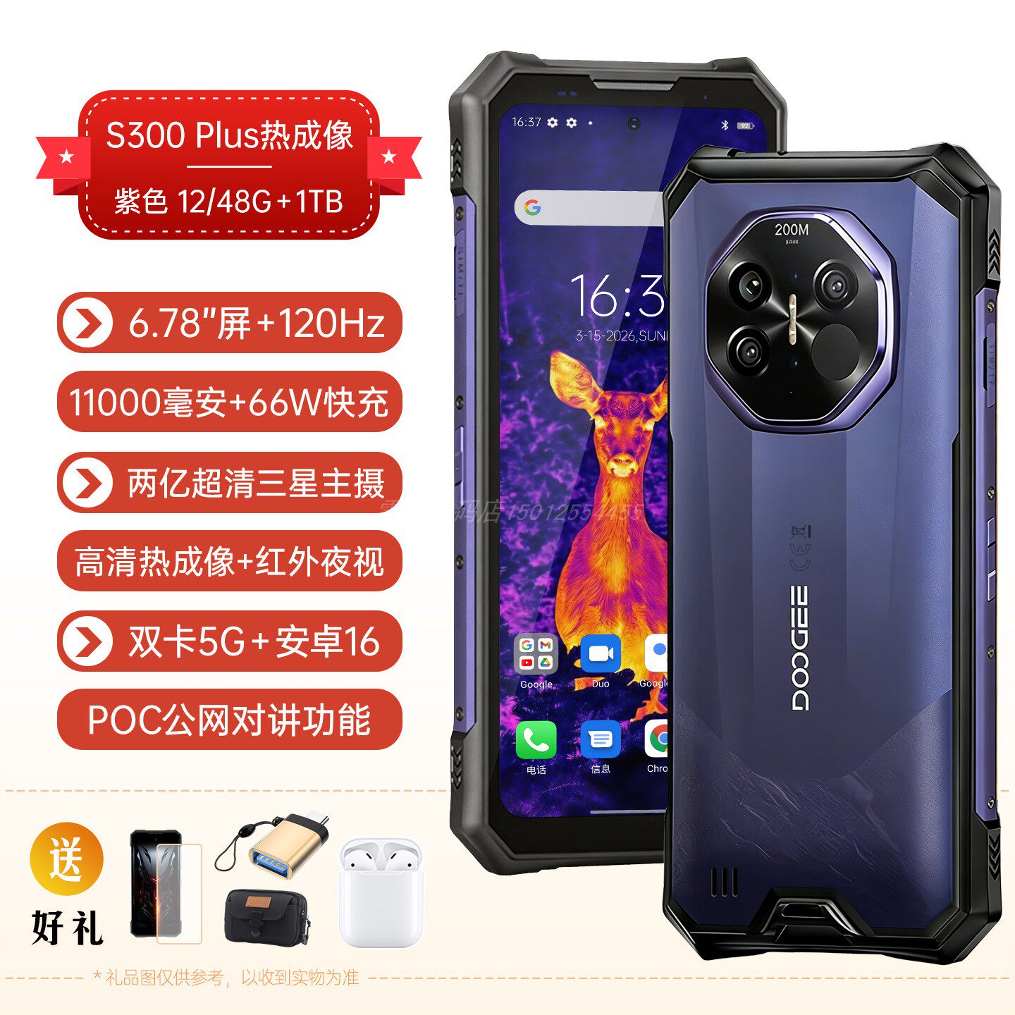道格S300PLUS旗舰三防智能手机5G防水防摔热成像夜视大电池长待机