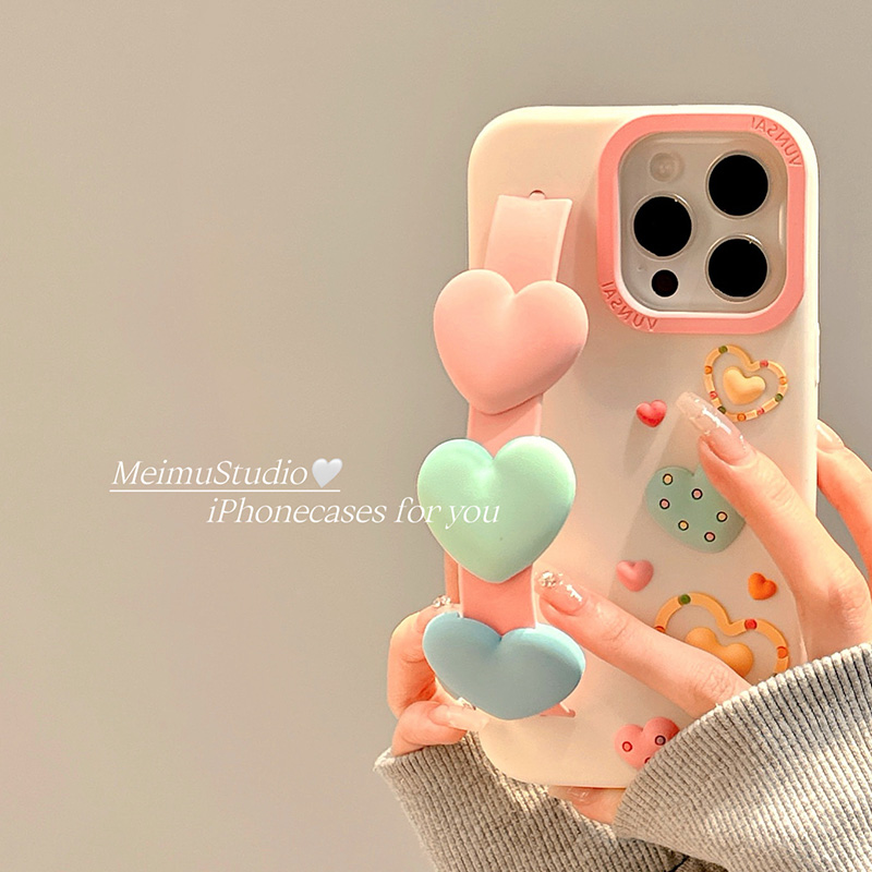 美牧韩风ins立体爱心手腕带适用苹果17promax手机壳iphone15新款16pro少女15pm创意14pm甜美13硅胶14全包软壳