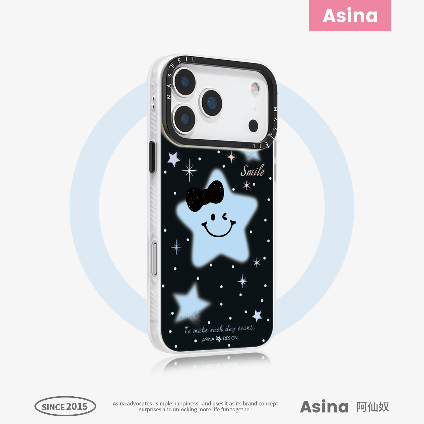 微笑星星适用苹果17Promax手机壳15磁吸支架iPhone16Pro保护套好看创意plus全包可爱14网红p13新款高级感