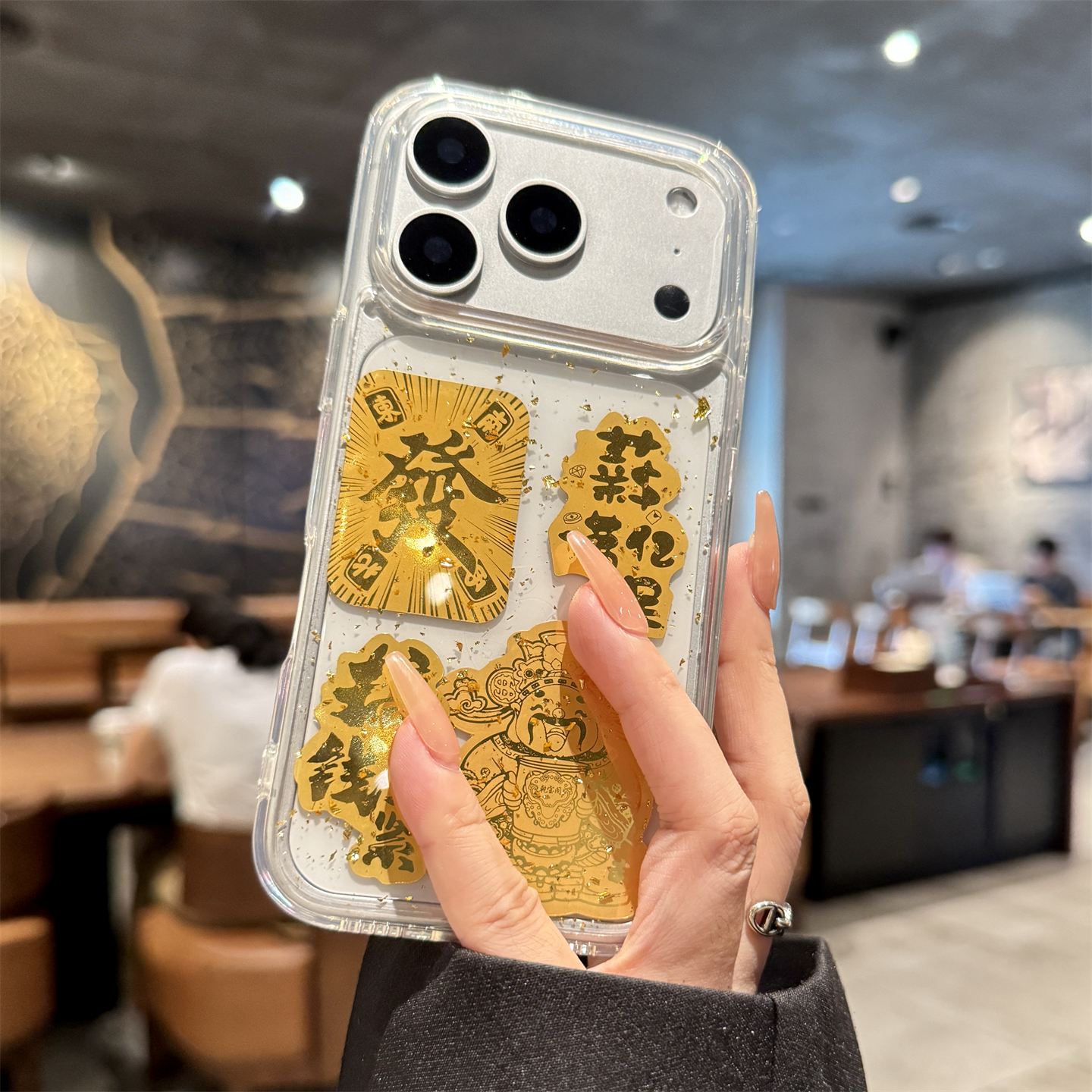 新年财神爷适用苹果16promax手机壳iphone16Pro日进斗金15创意17文字新款14plus高级13pm硅胶12透明软金箔女i
