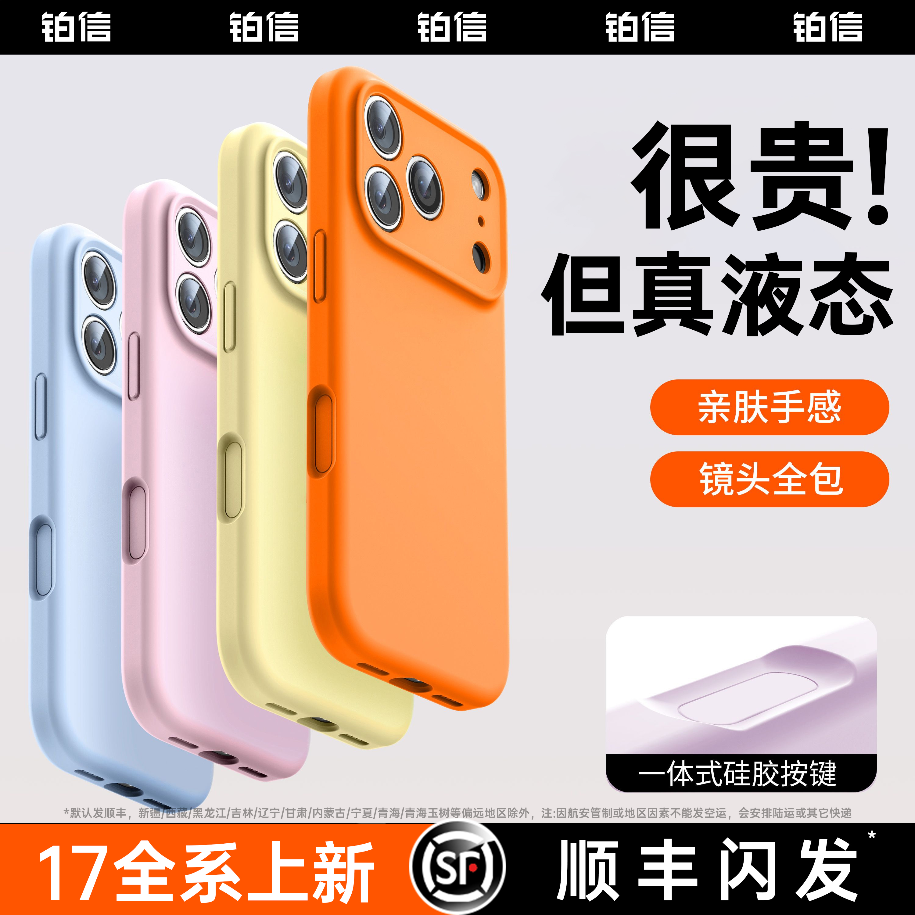 【美国进口】铂信适用苹果17promax新款手机壳iphone16真液态硅胶15保护套14镜头按键全包13防摔散热情侣男女
