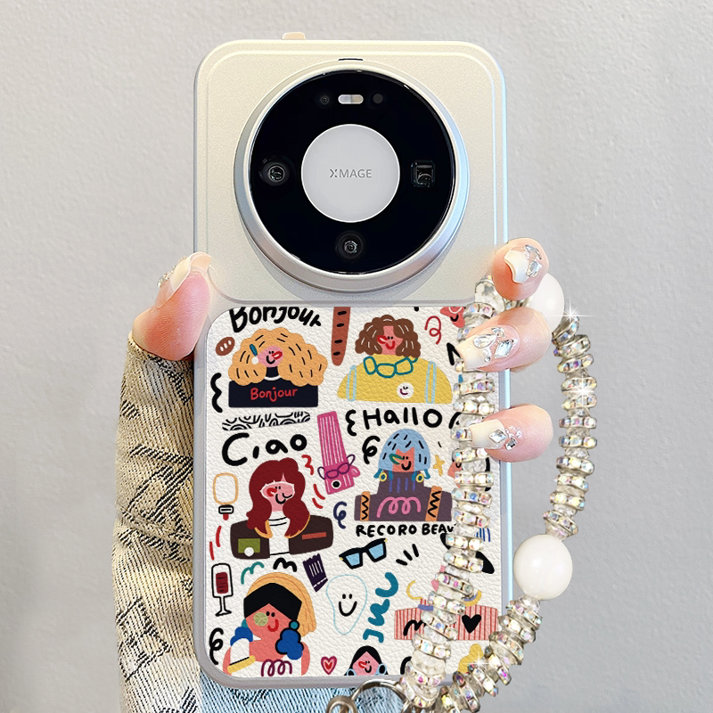 适用华为mate80promax手机壳2026新款mate70pro撞色小羊皮高级感m60pro+涂鸦卡通pura70pro个性女p80全包硅胶