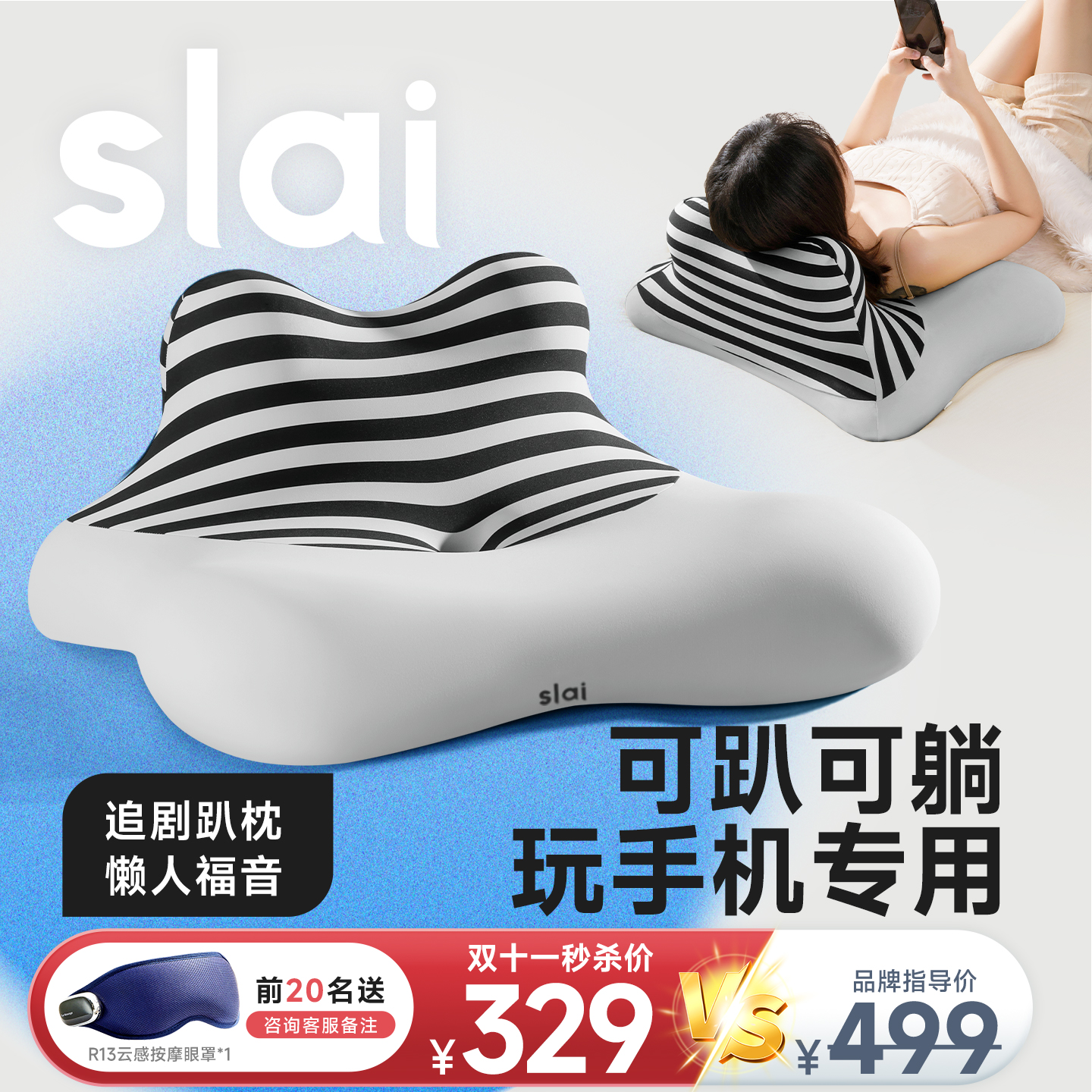 思莱宜靠枕趴睡枕玩手机专用枕头护颈趴着睡觉追剧神器床头靠背垫