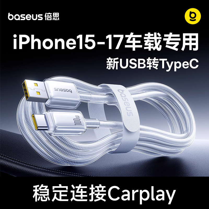 倍思适用苹果17车载carplay充电线iPhone16快充usb转typec数据线安卓手机14Pro车机15平板tpyec充电器线2米