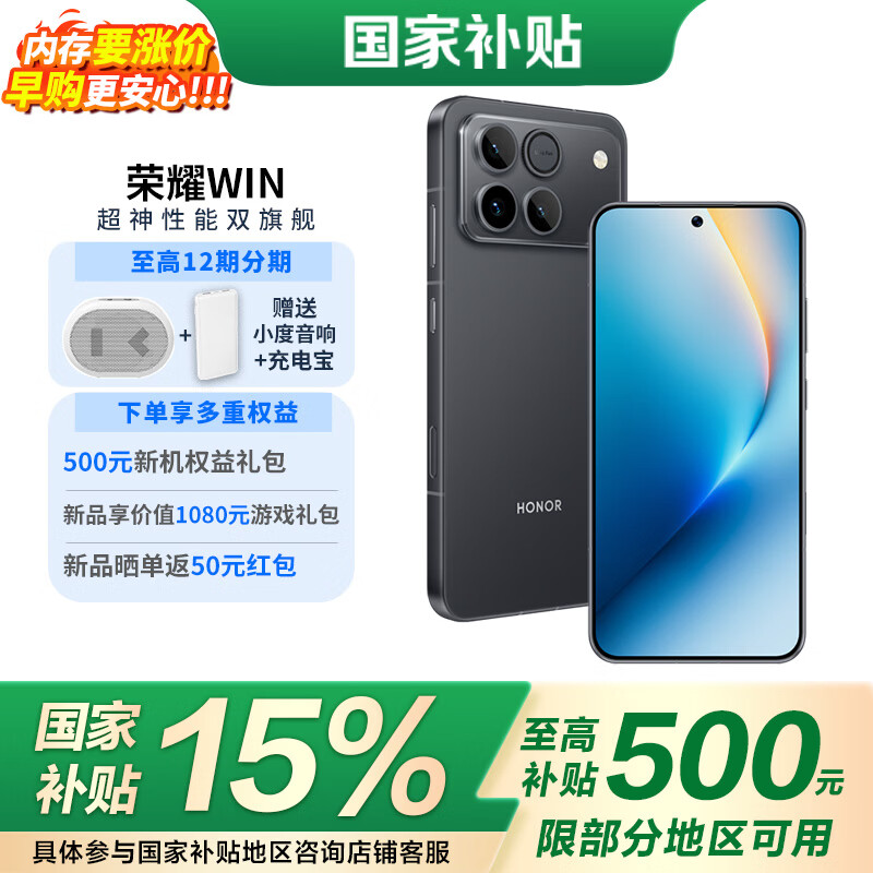 荣耀WIN 新品来袭【张予曦同款】【国家补贴15%】第五代骁龙8至尊版 荣耀东风涡轮散热 AI 游戏手机 快开黑 16GB+512GB 官方标配