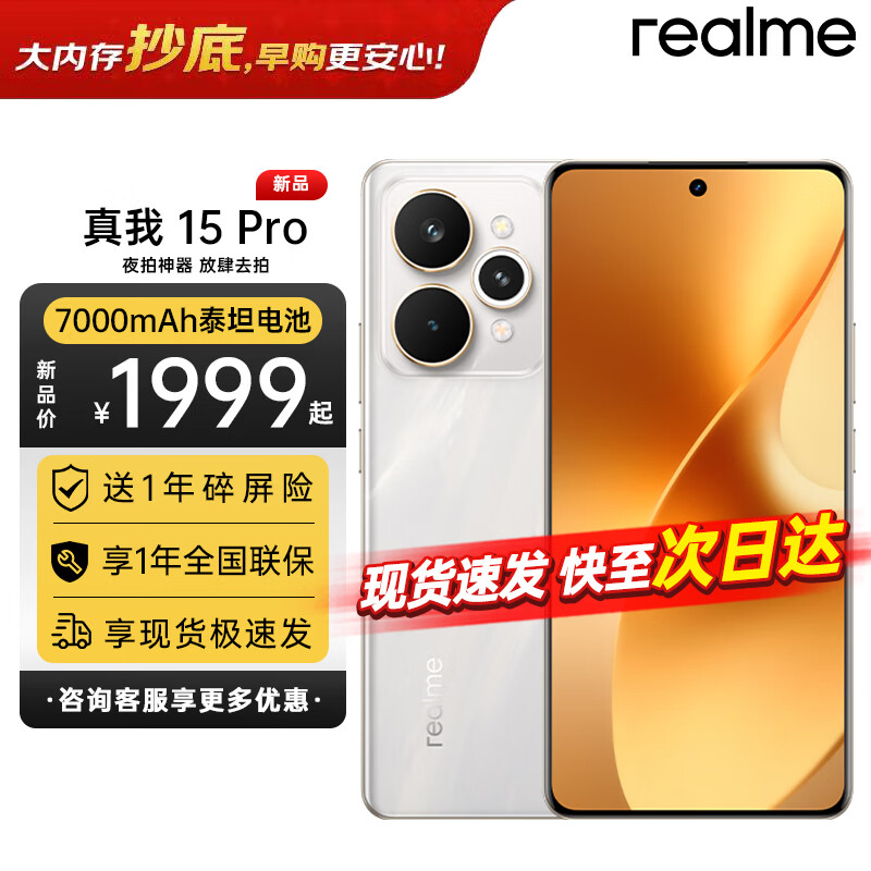 真我(realme)【国家补贴15%】realme真我15 Pro oppo 5G拍照游戏电竞手机 快充80W+7000mAh大电池 真我15pro 真我15 Pro 12+256 流光白 官方标配
