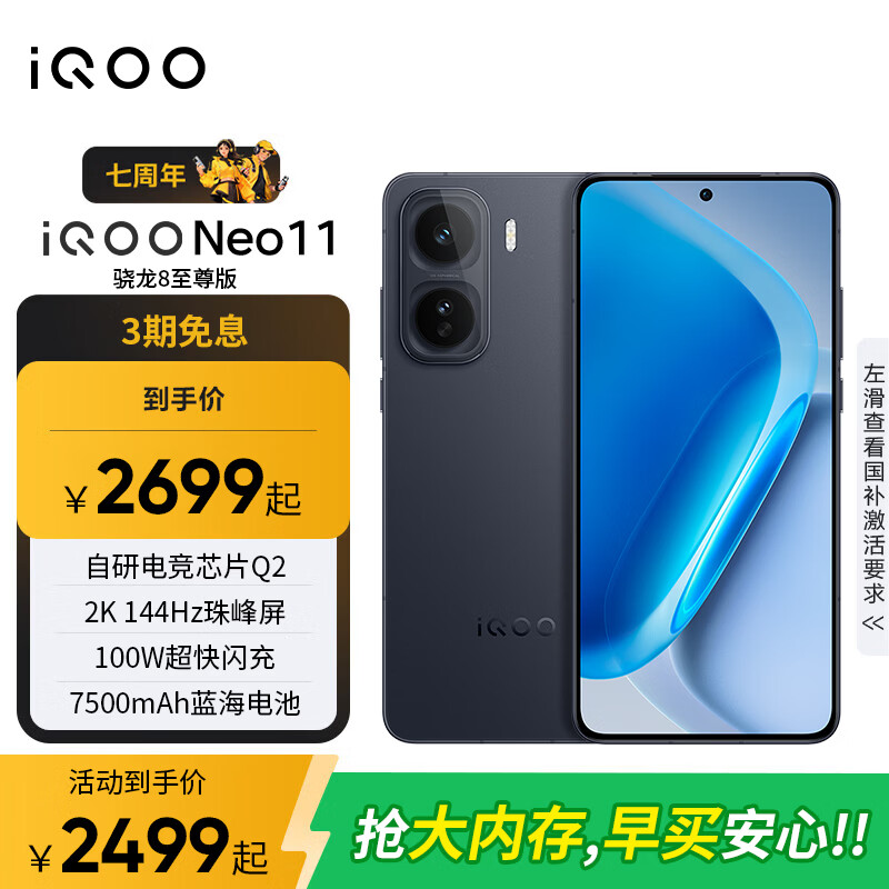 vivoiQOO Neo11手机 骁龙8至尊版 自研芯片Q2 7500mAh长续航 144HZ 新品5G 学生电竞游戏手机 疾影黑 16GB+512GB 官方标配【全国补贴】