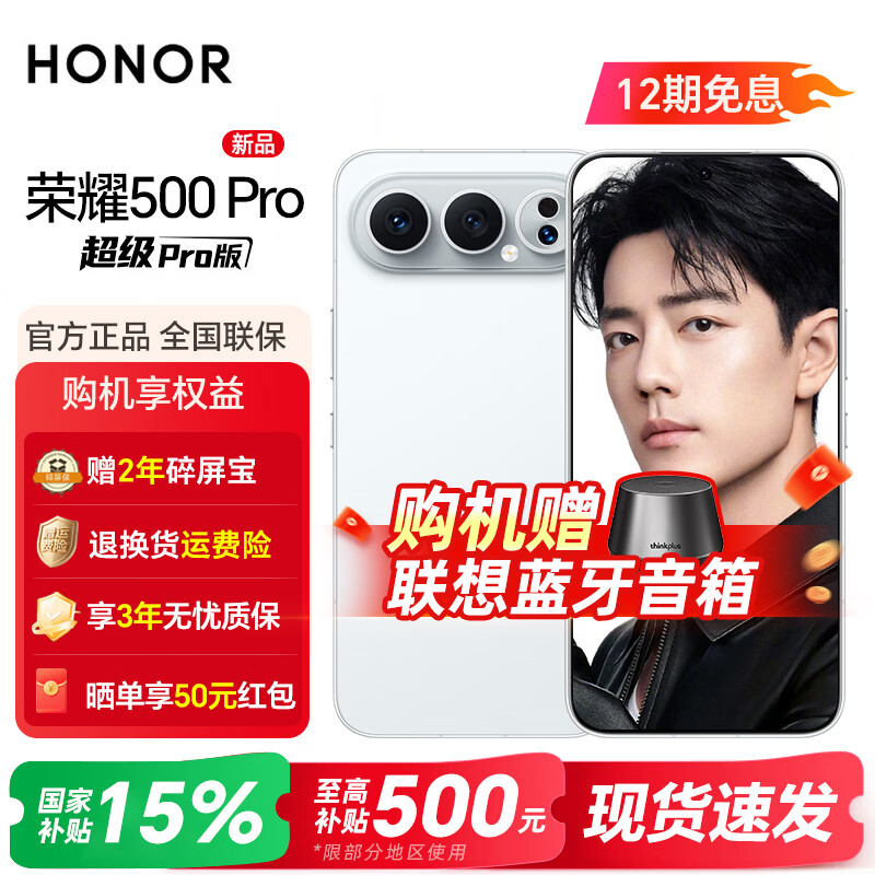 荣耀500 Pro 【肖战同款】 新品5G手机 2亿人像全能实况 荣耀400Pro 升级版 AI手机 月光银 12GB+256GB 官方标配
