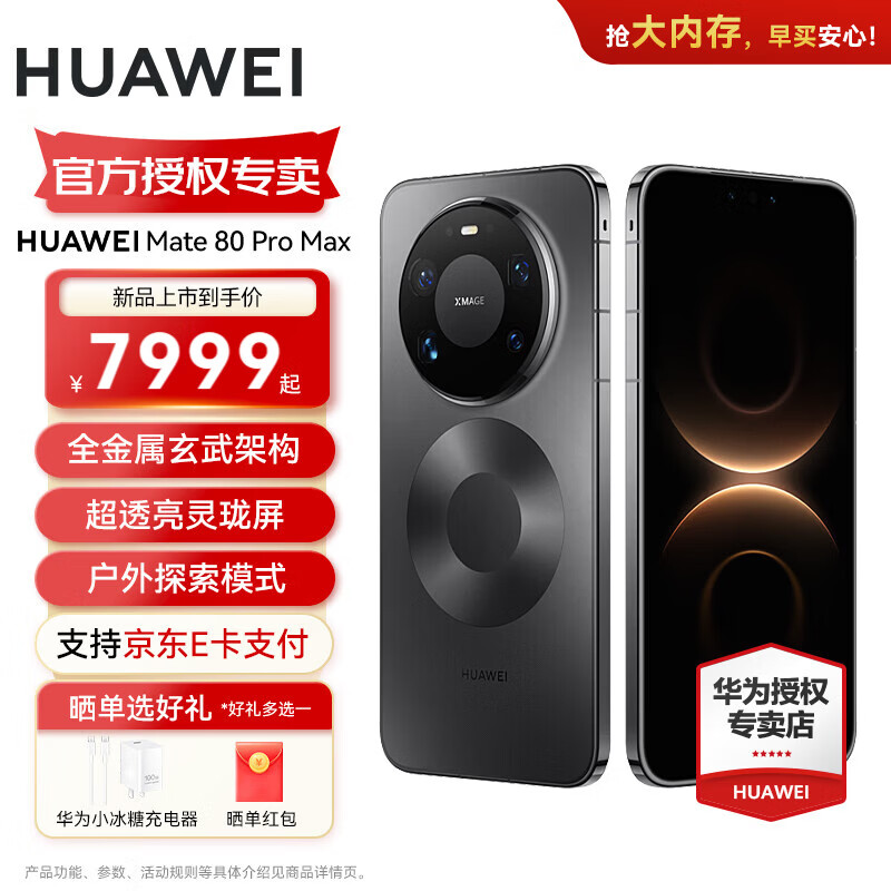 HUAWEI Mate 80 Pro Max 全金属玄武架构超透亮灵珑屏 新品旗舰鸿蒙手机华为mate80promax 官方正品 极夜黑 16GB+512GB 官方标配